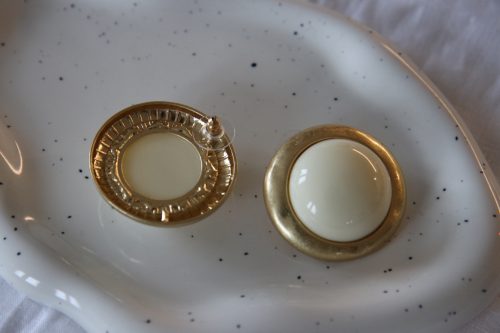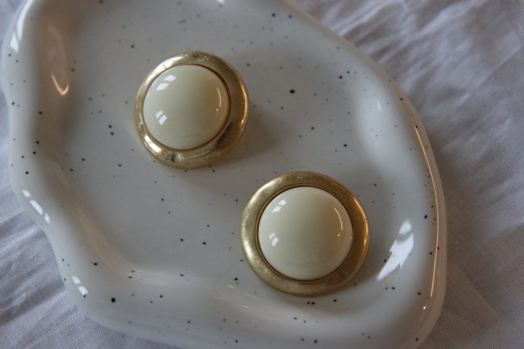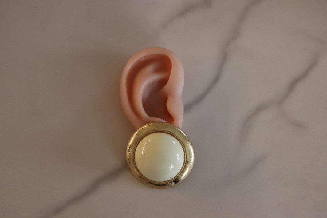 Orecchini XL realizzati in acciaio dorato anallergico e perla sintetica.